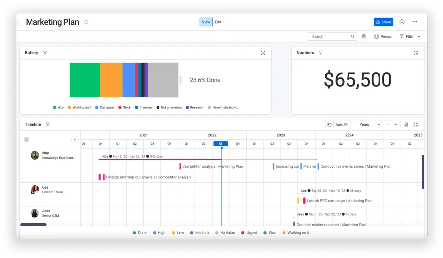- Gantt Charts: Easily turn old spreadsheets into smart boards where you can view them as Gantt charts.