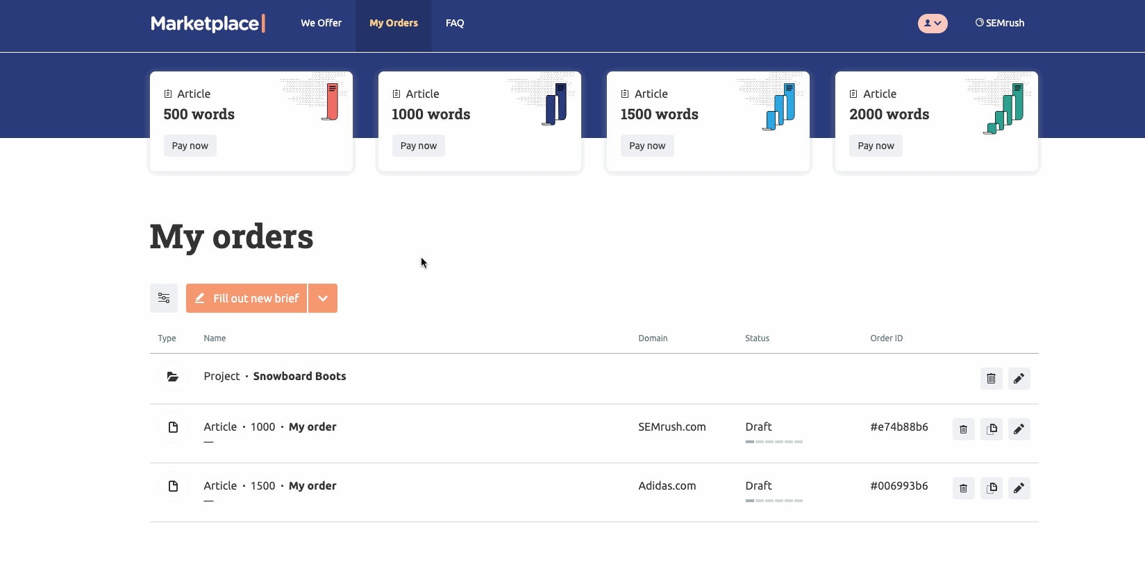 - SEO-Focused Content: Semrush Content Marketplace supports the creation of SEO-friendly content.