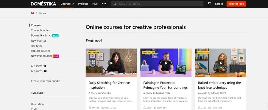 Domestika is an online education platform. It offers a wide range of courses for those who want to develop their skills in creative fields.