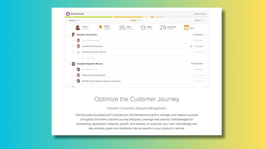 ClientSuccess is revolutionizing the way SaaS companies manage, retain, and grow their existing customer base. They offer a holistic, personal approach to managing success throughout the customer lifecycle. True Customer Success Management Platforms provide actionable insights, rich customer analytics, and best practices to reduce customer churn, increase revenue, and maximize customer lifetime value. They believe SaaS is more than software and service. ClientSuccess is more than just a reporting tool that users turn to once or twice a week. It is a true customer management platform that offers a powerful solution for frontline customer success managers and actionable insights for executives.