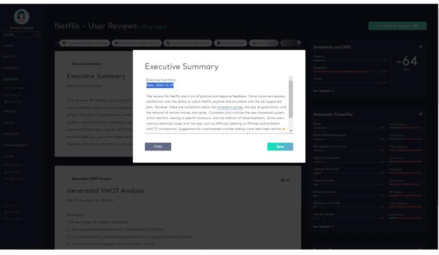 As previously announced, Kimola shared analysis results using GPT to transform them into executive summaries, SWOT analyses, and other marketing materials from a researcher's perspective. Now, we offer more control and customization options for these GPT outputs. You have the freedom to organize your GPT outputs in a way that suits your business and better guide your marketing strategies. 😎