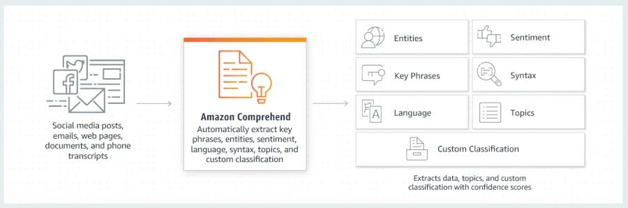 Amazon Comprehend is one of the artificial intelligence services of Amazon Web Services. It is a natural language processing (NLP) service that looks for patterns and connections in text using machine learning.