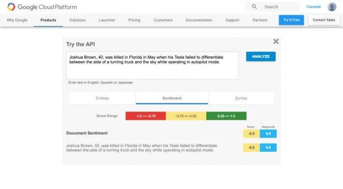 5- Google Cloud Natural Language API (It's only API, not for marketing teams, no ready-made models for different business types)