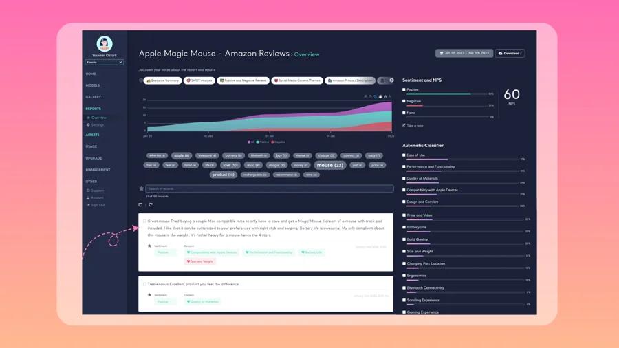 🧠 Cutting-Edge Technology: Kimola utilizes dynamic classification technology, supported by advanced algorithms and machine learning models. It seamlessly handles multi-label scenarios, recognizing and categorizing feedback into multiple dimensions simultaneously. This not only saves time but also provides richer and more actionable insights.