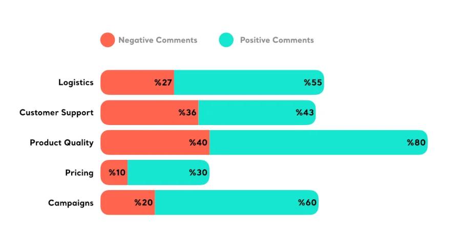Social media analysis gives you insight into what your consumers say, like, or dislike about your brand. This analysis allows you to gain essential insights to identify key business strategies. For instance, you can see the bigger picture by determining if and how your consumers are talking about prices, brand quality, or other details related to your product. The table that emerges at the end of the day ensures that your brand follows the same monthly metrics and takes the necessary actions. If you're able to classify customer feedback with such categories, adding a sentiment analysis would make it more meaningful.