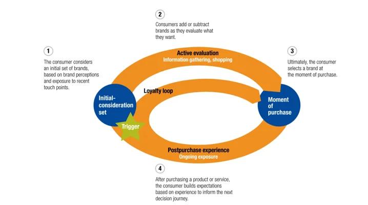 On the other hand, the Customer Journey is a detailed depiction of the customer's path as they navigate through various stages of engagement with a brand. It zooms in on the specific touchpoints, interactions, and decision-making points along the way. This concept focuses on understanding the customer's steps from initial awareness to post-purchase engagement, identifying pain points, optimizing touchpoints, and ensuring a seamless process. By mapping the Customer Journey, businesses gain insights into where customers might encounter challenges, allowing them to strategically enhance individual interactions to create a smoother overall experience.