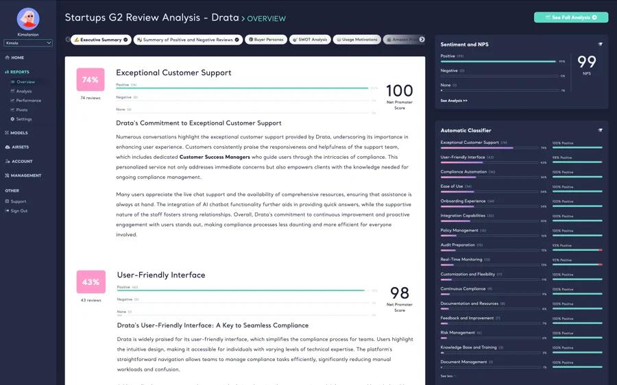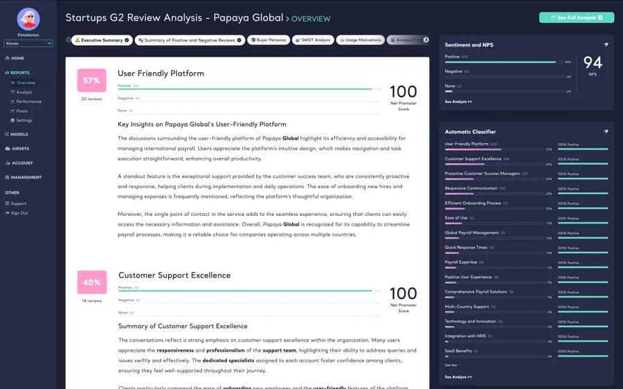 At Kimola, we’ve analyzed over 5,000 G2 reviews to uncover the key factors that make these startups shine—straight from their clients. From product strengths to areas for improvement, we’ve distilled the insights that will help you make informed decisions and connect with the right people at Slush.