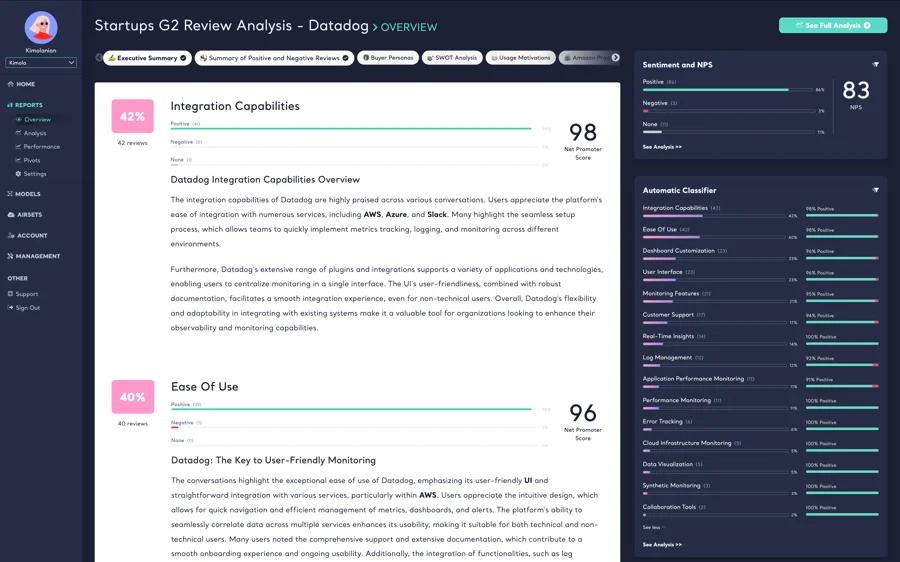 Analysis of "What do you like most about Datadog?" Question on G2 Product Page