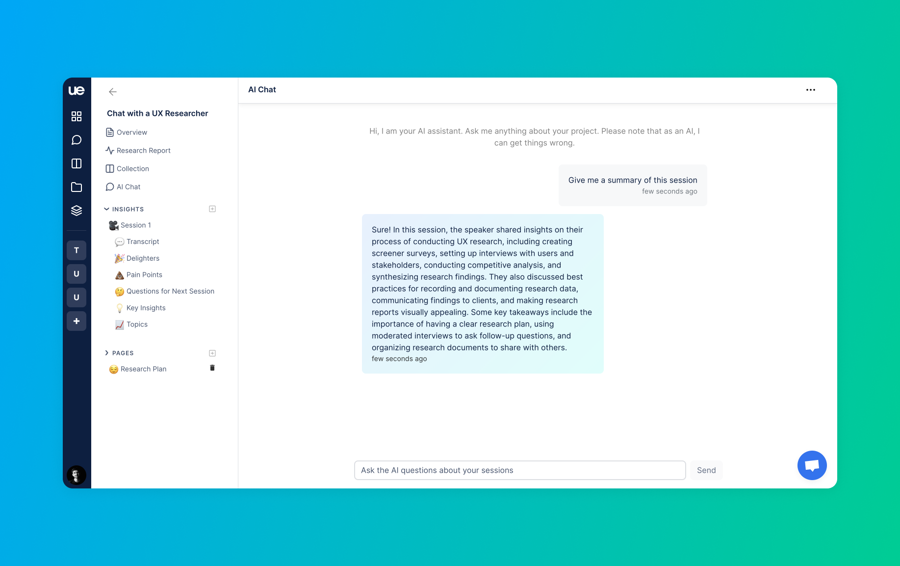- You can turn your moderated user interviews into insights and shareable reports with AI-supported transcription, summaries, and sentiment analysis.