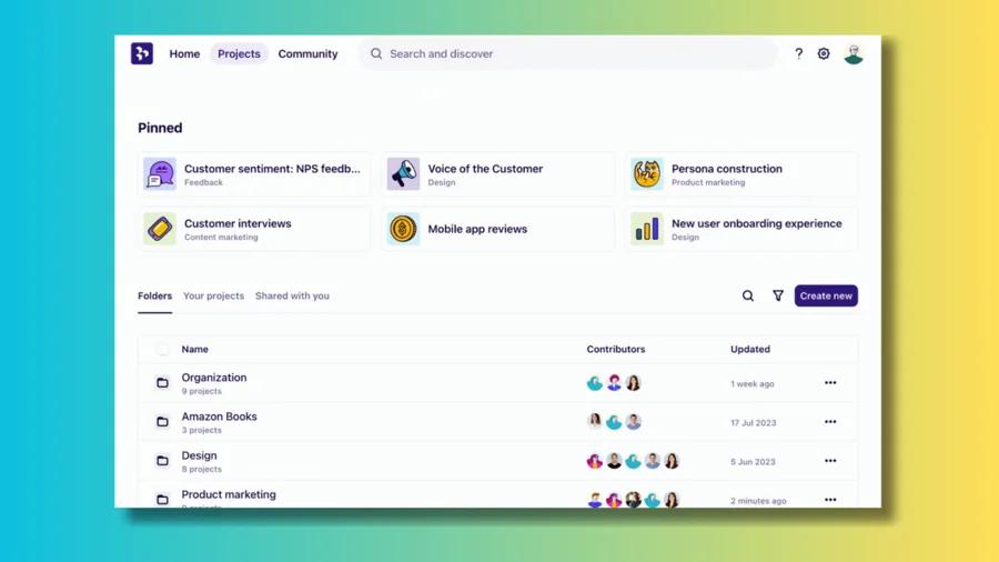 Established in 2017, Dovetail is a customer insight center that helps researchers and product owners manage research data from various sources in an organized and efficient manner. It facilitates storing, analyzing, and sharing research projects, truly shaping the term "research repository." Compared to Kraftful, it offers many features such as analyzing interviews, sharing clips from sales calls, transcribing video or audio, analyzing usability tests, tagging academic papers, and tagging user feedback.