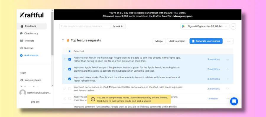 You can think of Kraftful as the ChatGPT of product research. However, Kraftful's customer base mainly consists of large firms, and although its price may seem affordable, special pricing lists are created for product teams with specific needs. The monthly plan fee may not be sufficient for large businesses.