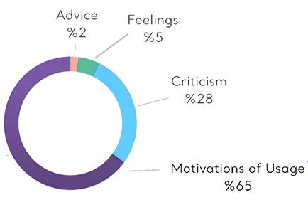 When the shares were analyzed, the contents were collected in 4 different categories. While 65% of users talk about their motivations and reasons for using ZOOM, 28% share their criticisms about the application. Also, 5% of users share how they feel while using the application, and 2% make various suggestions for further development.