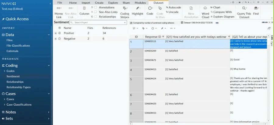 NVivo is a software tool that enables researchers to organize and analyze their data. With NVivo, you can import various data types such as Word documents, PDFs, audio files, images and videos. NVivo also offers an automatic coding feature. It provides a great convenience to researchers with features such as automatic transcription and automatic coding. However, you may need help with NVivo, especially when working with languages containing characters. In addition, it has some limitations when working with large datasets. With NVivo, you can collect, organize, analyze and gain insights from different data sources. You can import various file types, such as videos, images, surveys, emails and spreadsheets. The interface is user-friendly and closely resembles Microsoft, making it instantly familiar and intuitive for many users.