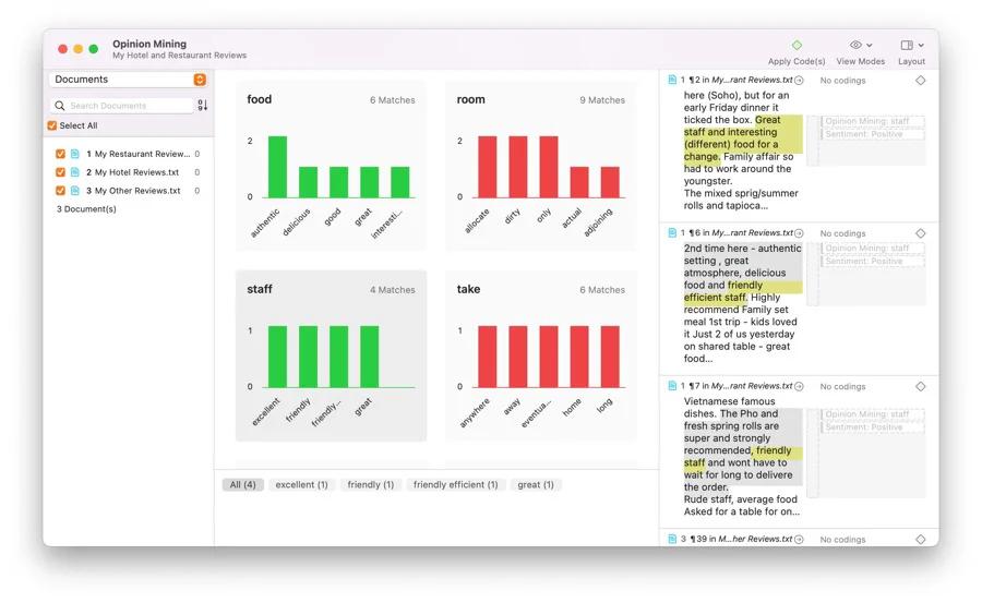 The interface is clean and elegant. It is more accessible for collaboration. It also has powerful features like sentiment analysis and automatic coding.