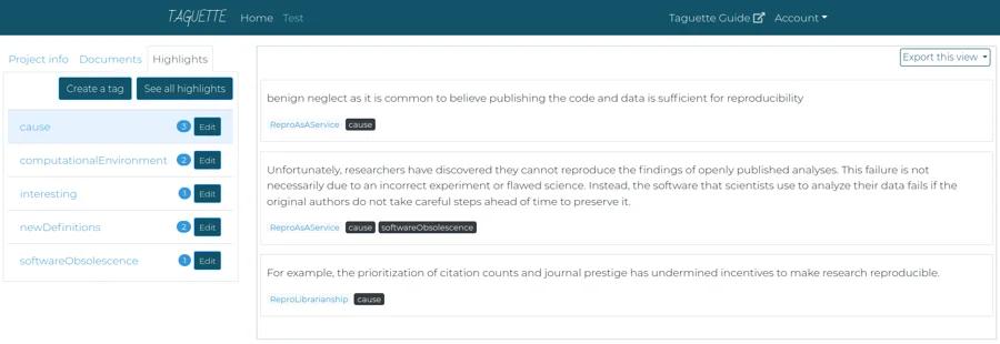 With Taguette, you can analyze and organize text-based data. It is also a free and straightforward qualitative data analysis tool that allows you to tag your data and export it for analysis. There are online and local versions. It is open source. It is easy to use. However, its simplicity comes with some limitations. For example, it does not support images and videos. It has no automation features and cannot analyze your data.