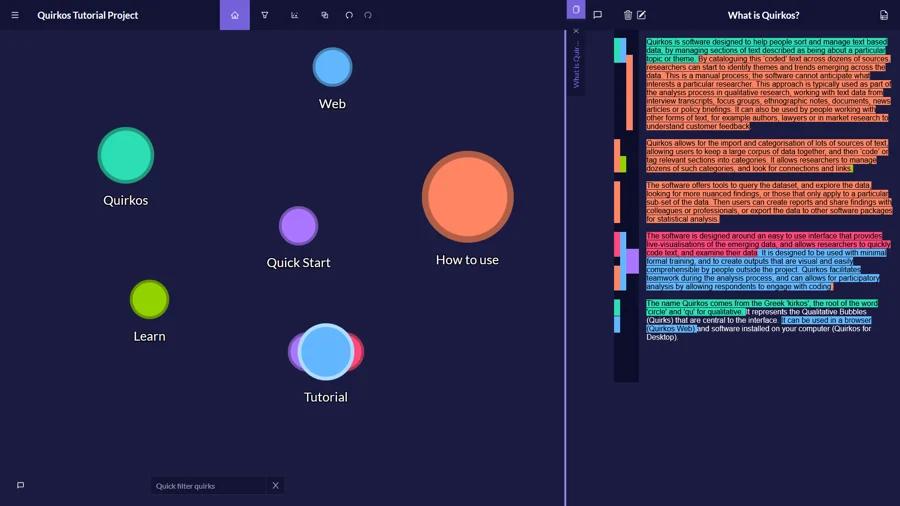 Quirkos is a tool that assists you with qualitative data analysis. It's particularly suitable for students and academics due to its affordability. It features drag-and-drop text functions and enables collaborative work by allowing simultaneous collaboration. Quirkos is an easy-to-use tool. However, this simplicity comes at the cost of fewer features. You may need to code your data manually. Quirkos offers three options: Student, Academic, and Commercial, with prices varying based on your preferences. If you need clarification on which software suits you, Quirkos provides a free trial. Additionally, it's budget-friendly.