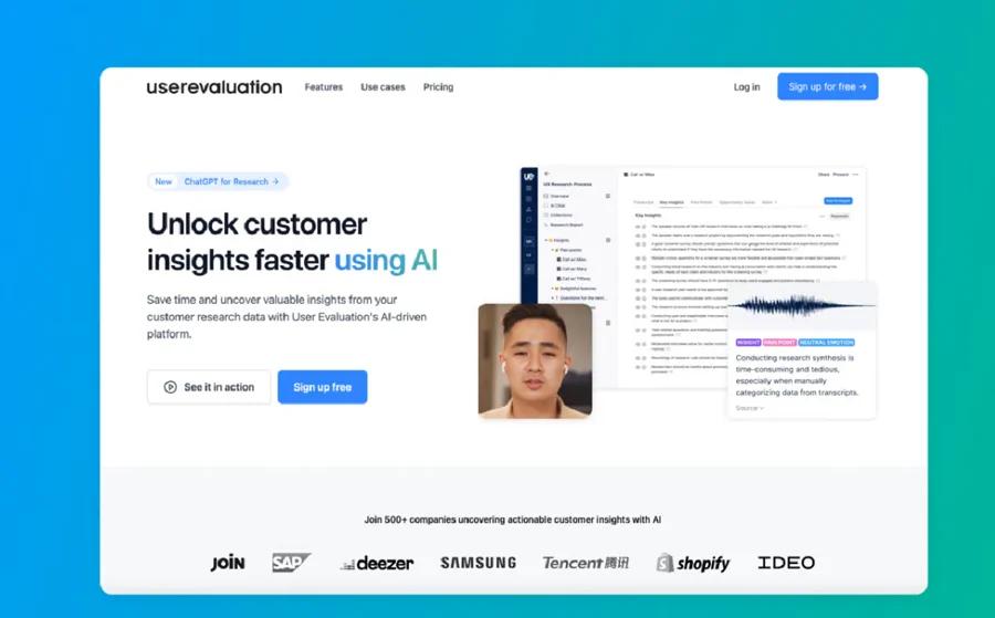UserEvaluation stands out with its user-friendly interface and data visualization capabilities. It also offers comprehensive tools, accessible analysis features, real-time feedback collection, support for over 57 languages, and AI-generated Insights (Analysis templates, Clips, Speaker maps, etc.). Its mobile compatibility further enhances its usability. With these features, companies can analyze user preferences more effectively and manage the process efficiently.