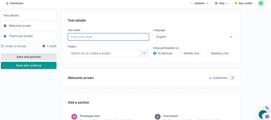 - Usability Testing: It provides various testing options such as usability, user, A/B tests, and surveys to the user.