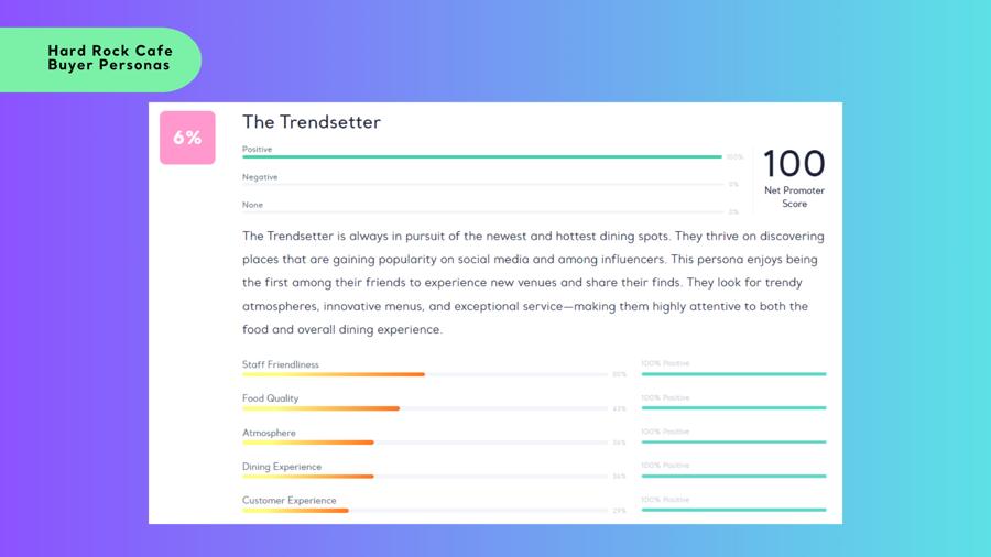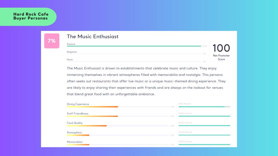 According to the Buyer Persona analysis we conducted at Kimola, Hard Rock Cafe attracts a diverse range of customers, each with their own unique motivations and expectations. From casual diners to die-hard music lovers, these personas help us understand what makes each visitor tick. Let's take a look at the different types of guests of this legendary venue!