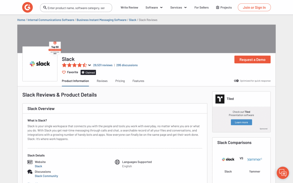 Being a marketing professional in a software company also means that you have to feed your product & development teams and build a communications strategy for your company. So here are some questions that you can answer just by searching a product on G2 and checking their page: