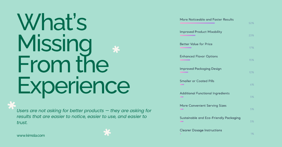 Others are not looking for a visible shift — at least not immediately. Among Long-Term Users, collagen is part of a routine rather than a result-driven decision. These users are more tolerant of gradual outcomes, but their continued use depends on how easily the product fits into daily life.