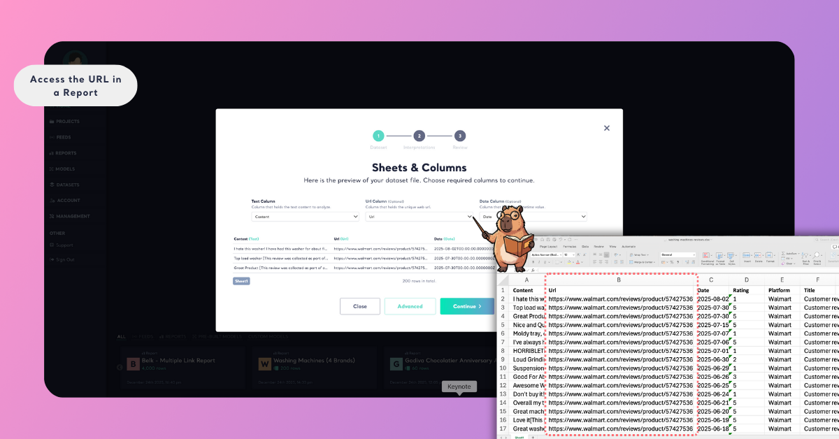 2 mins read - Updated on Dec 25, 2025A report in Kimola is the structured output of analyzed data. Each record in a report can be linked back to its original source when a URL is available. This allows you to review feedback in its original context—such as an Amazon product page, app store listing, or review platform—directly from your report.