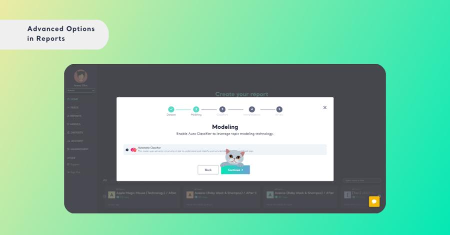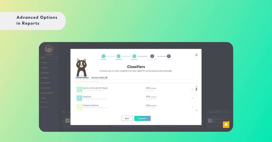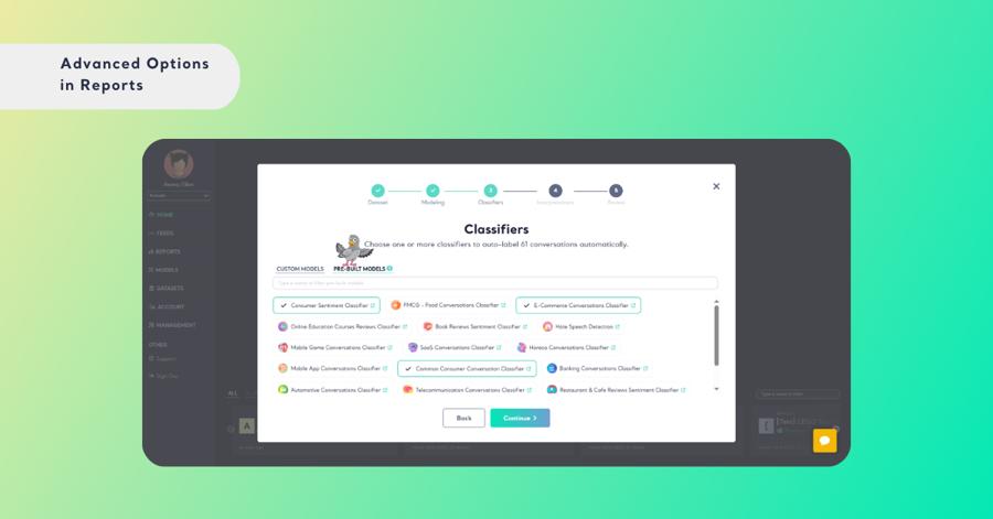 Enable Auto Classifier to leverage topic modeling technology. Then click the "Continue" option.