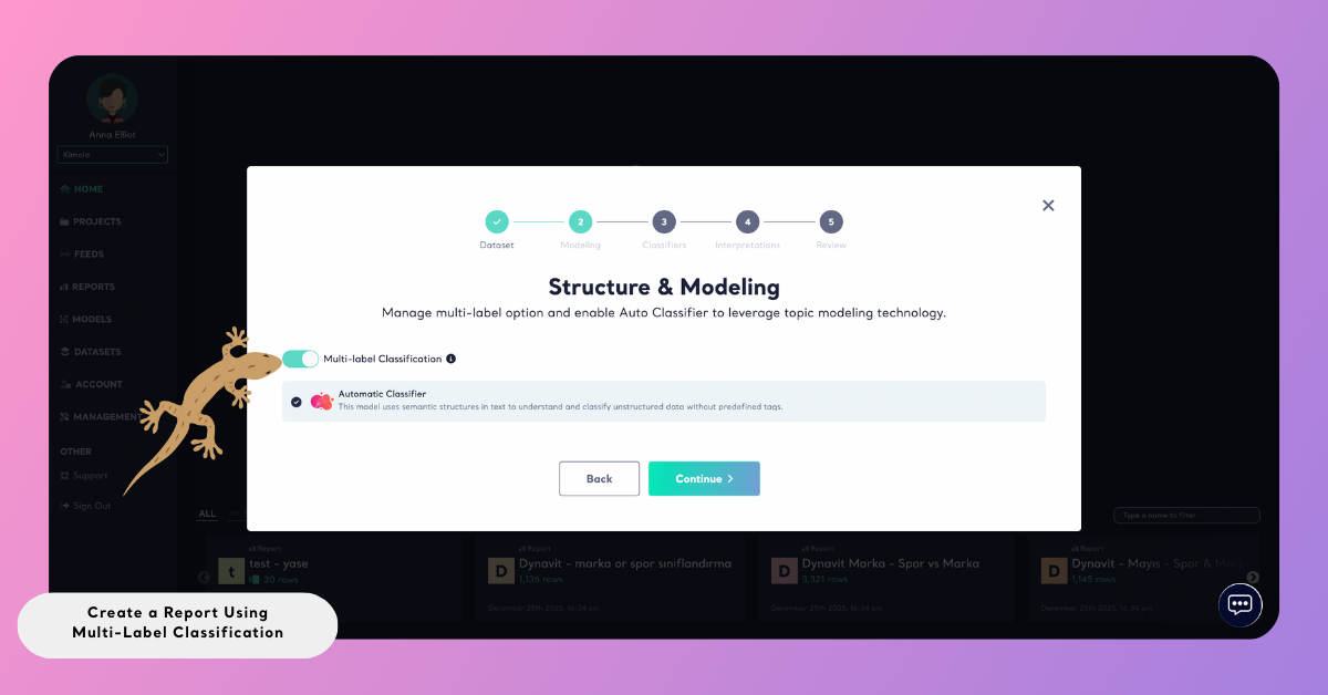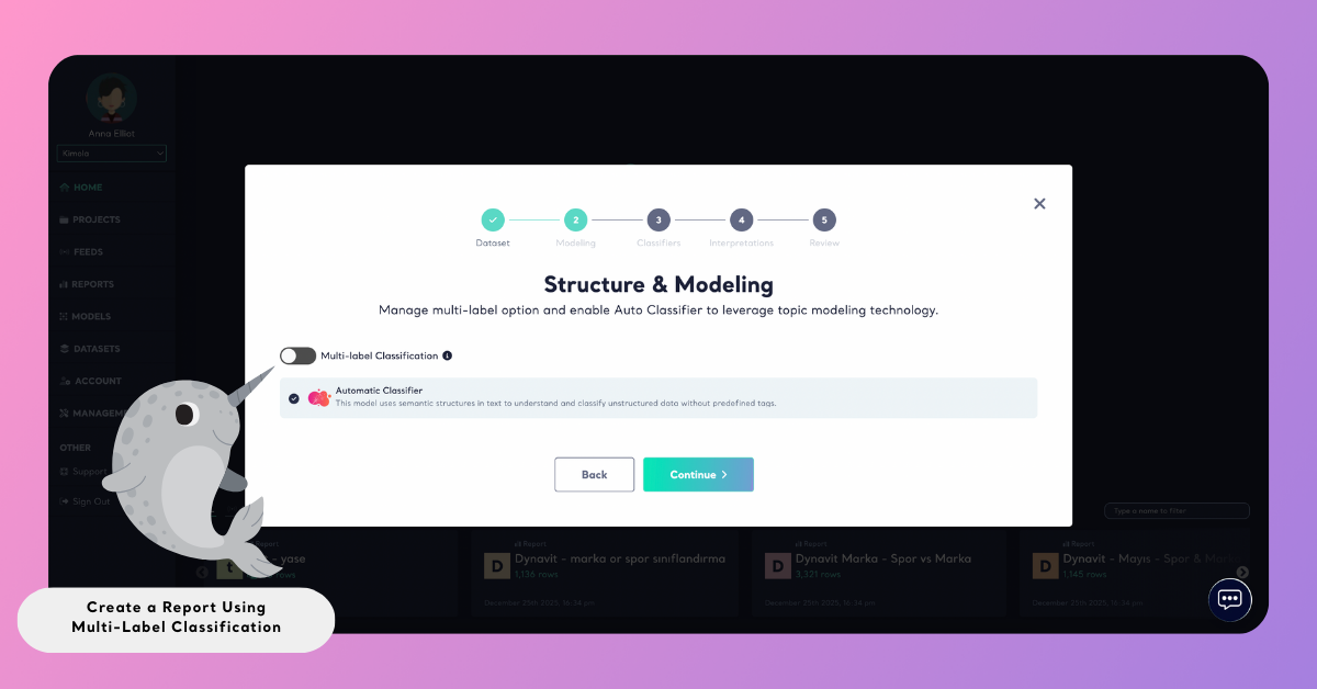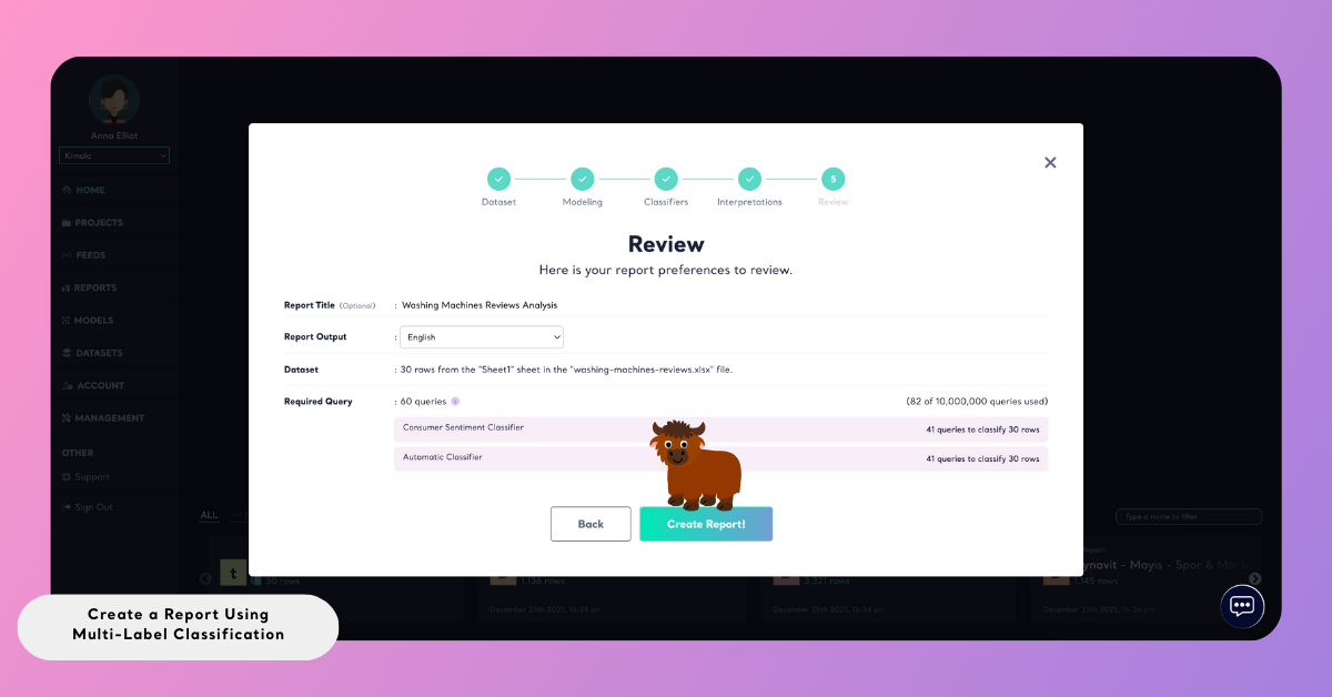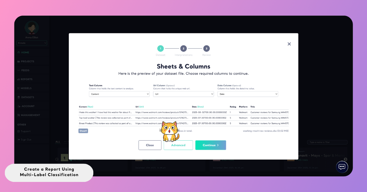 To create a report with multi-label classification, start by adding your data to Kimola. You can do this in one of two ways: