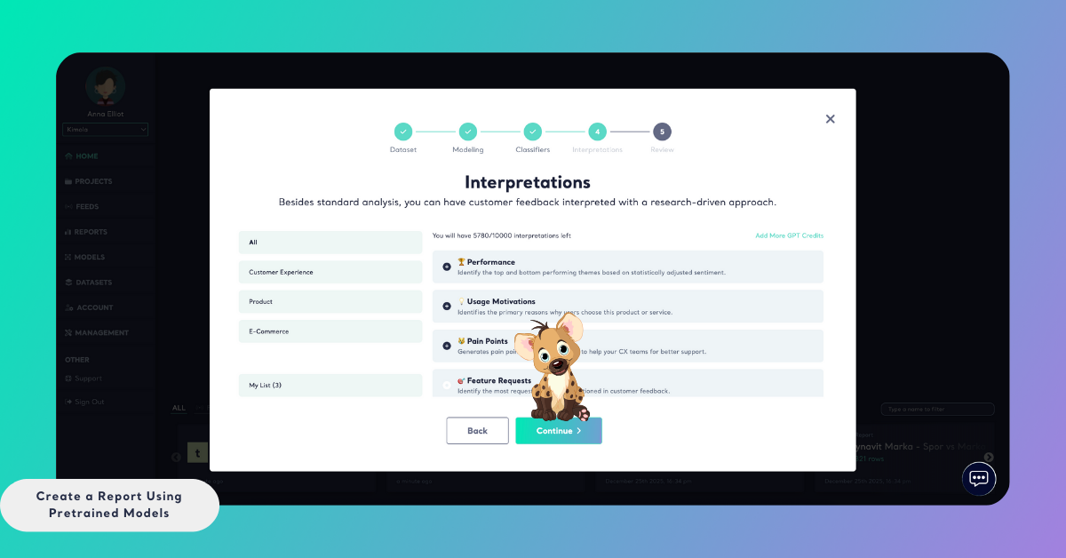 In this step, you can choose to add interpretations to your report. Interpretations provide higher-level analytical outputs, such as structured insight frameworks, summaries, or performance evaluations built on top of classification and sentiment results.