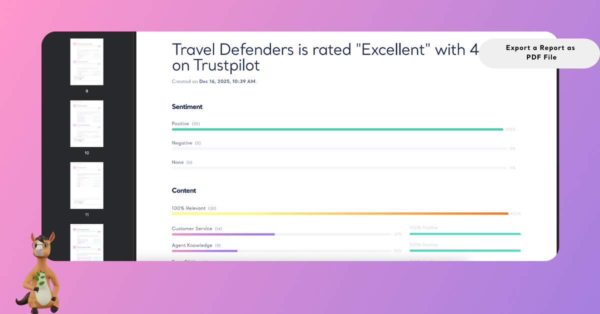 Exporting reports as PDF files ensures your insights are easy to distribute, consistently formatted, and ready for professional use. PDF exports are especially useful for documentation, client sharing, and situations where a fixed, non-editable format is preferred.