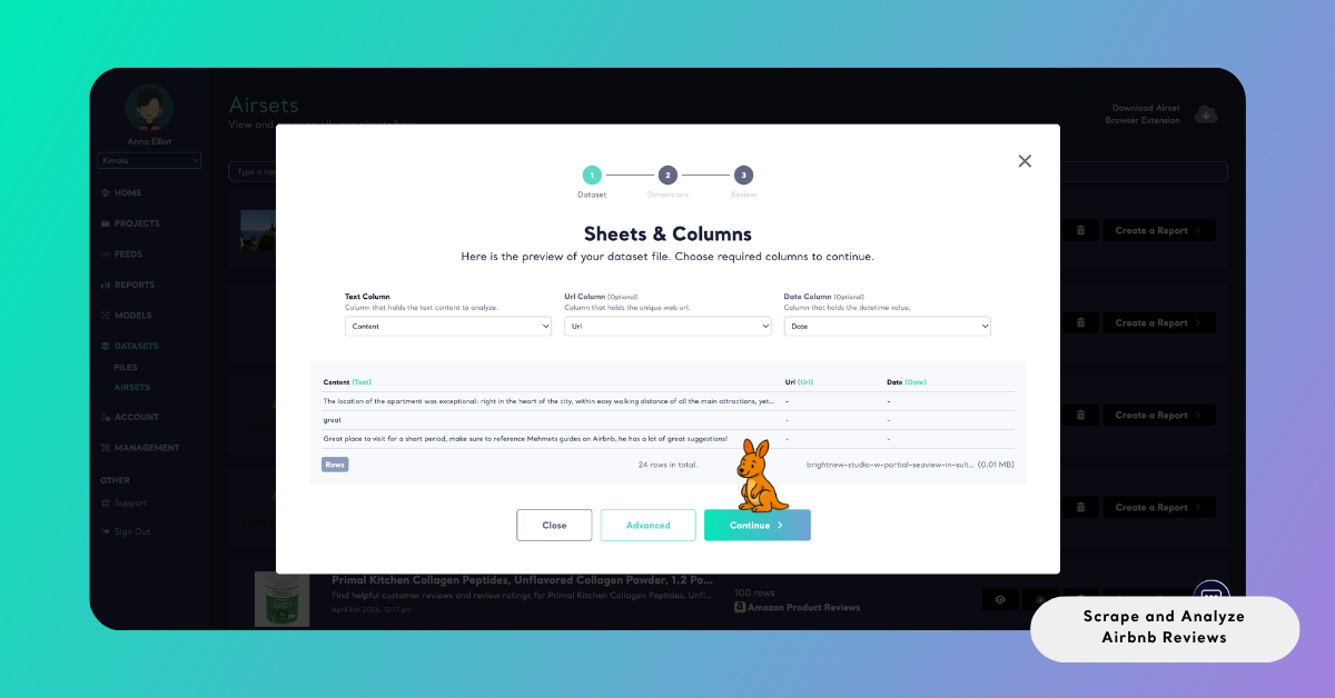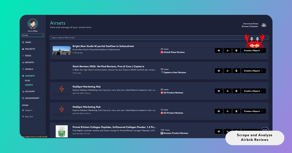 With Kimola, you can collect and analyze Airbnb reviews through a structured workflow. By gathering reviews from listing pages and organizing them into datasets, the platform helps transform experience-driven feedback into actionable insights.