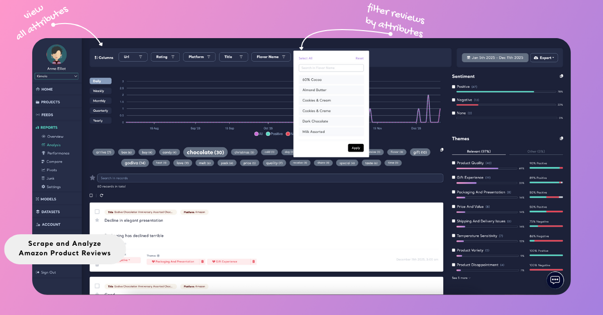 12 mins read - Created on Dec 18, 2025Amazon product reviews contain rich customer feedback that can be analyzed to identify customer needs, pain points, and underlying motivations. Kimola enables the collection and analysis of these reviews without any technical setup, whether the focus is a single product or a comparative evaluation across multiple listings.