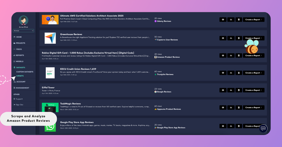 Airsets allow you to store scraped reviews before analysis. This makes them especially useful when working on larger research projects or when collecting data from different products or sources over time. Instead of analyzing everything immediately, you can first collect and organize your data as Airsets, then decide later which dataset to analyze by creating a report.