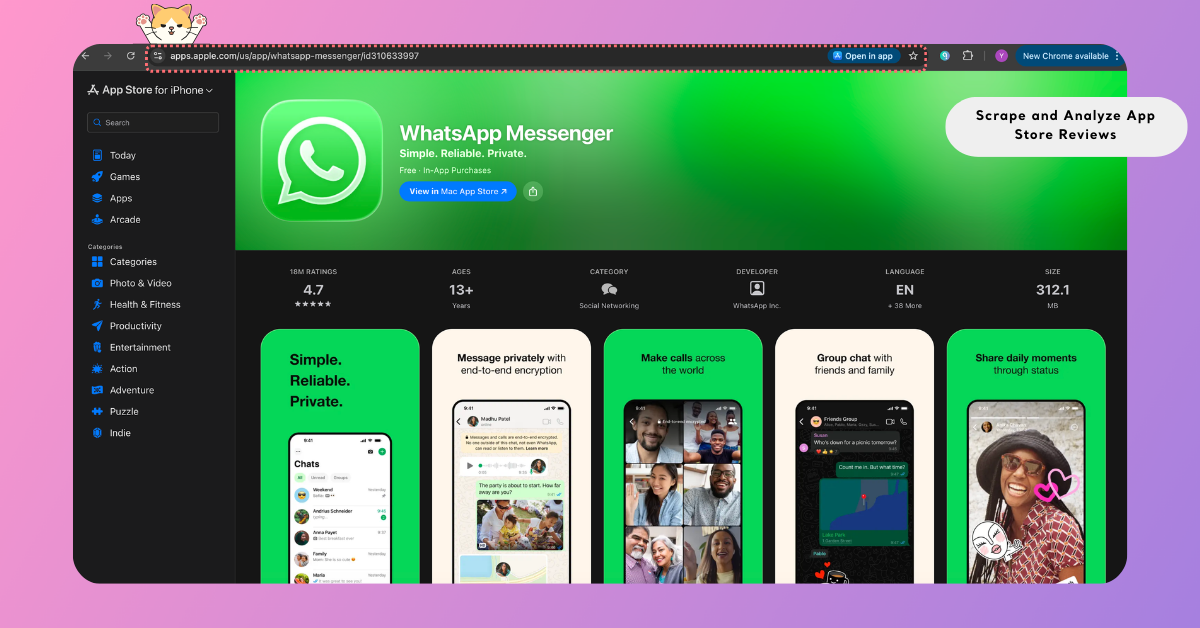 Automatic scraping allows you to analyze App Store reviews by providing the URL of an app page. There is no need to manually collect reviews or prepare a dataset beforehand.