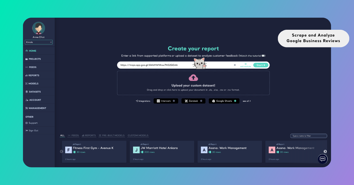 Google Business reviews can be collected automatically by adding a Google Maps business link to Kimola. This tutorial explains how to automatically scrape reviews using a Google Maps business link and how to analyze the collected review data within the platform.