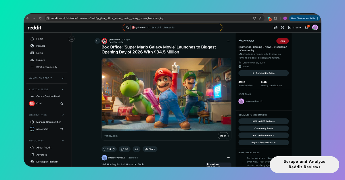 Go to Reddit and navigate to the post or discussion you want to analyze. Since the browser extension collects only the content that is currently visible in your browser, make sure the comment section is fully loaded.