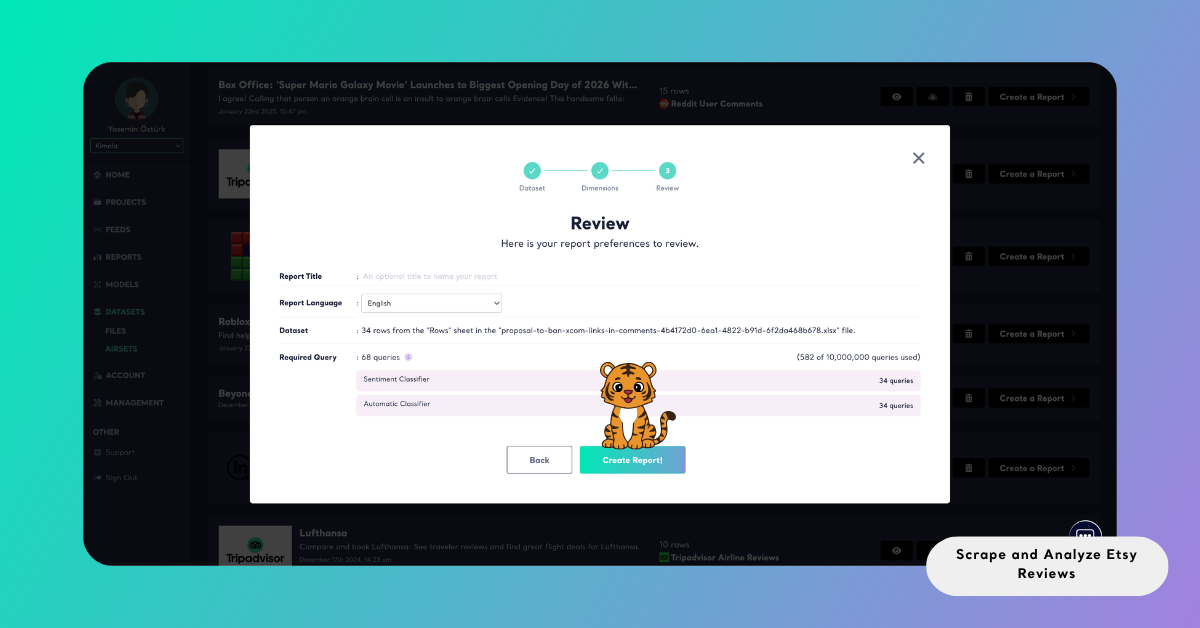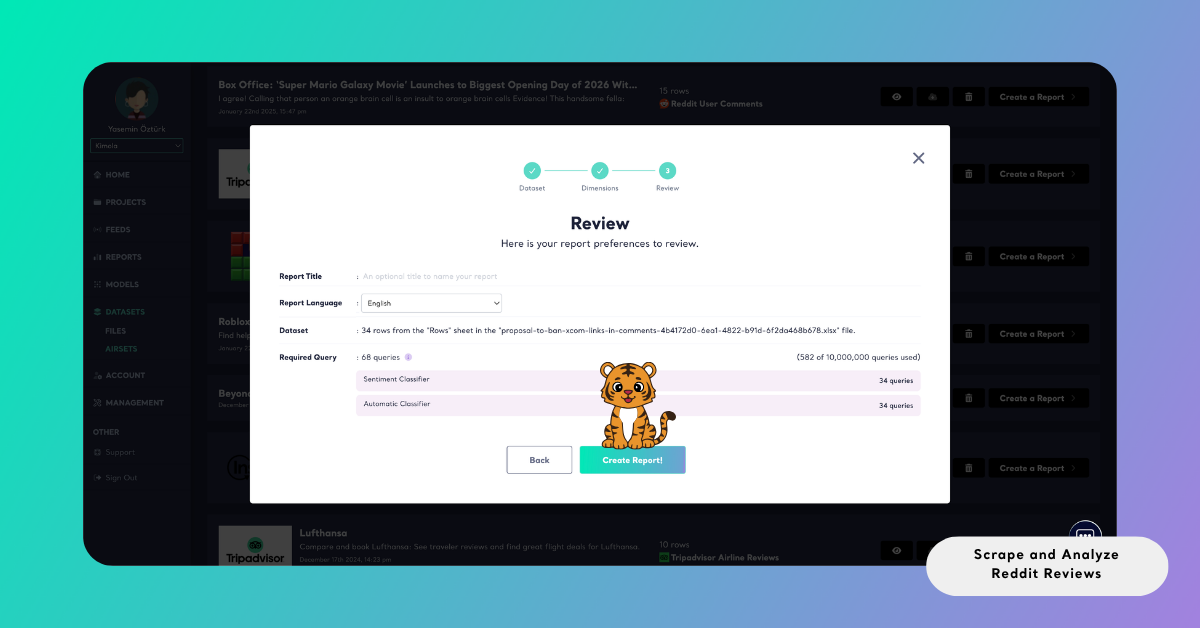 Once your setup is complete, click Create Report to start the analysis. Kimola then runs the entire process in the background — processing the collected data, applying the selected analyses, and generating your report automatically.