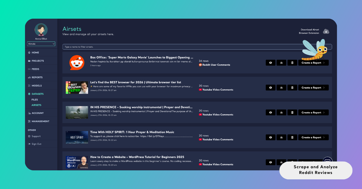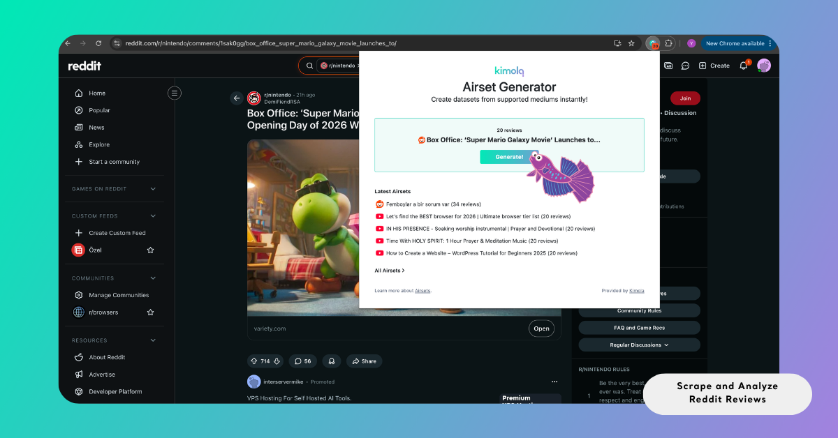 With Kimola, you can collect Reddit posts and comments manually and convert them into structured datasets for analysis. This tutorial explains how to capture Reddit data and analyze it step by step.
