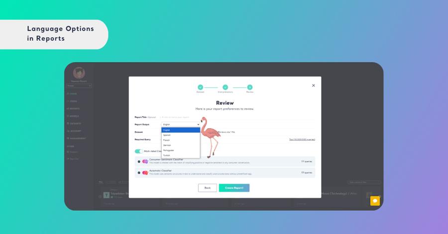 Before initiating the analysis, during step 3 of loading your dataset, you will be prompted to select the report output language. This allows you to create your report in the desired language by choosing from the available options.