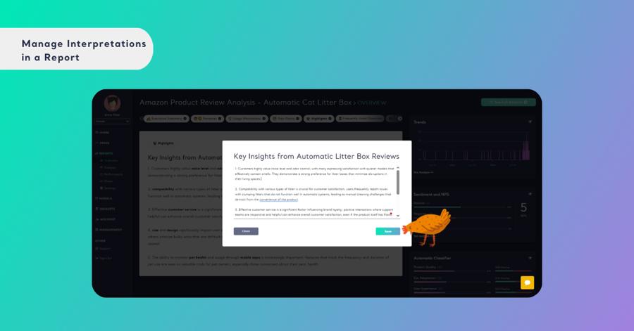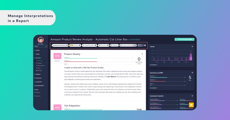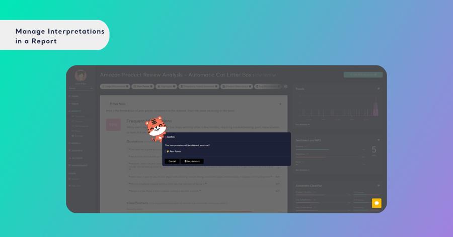 2 mins read - Created on Feb 20, 2025Managing your interpretations in a report is key to customizing your insights and tailoring your data analysis to your specific needs. While you can edit or delete most interpretations, please note that the executive summary, buyer persona, and SWOT analysis interpretations are not editable or deletable. Here’s how to manage other interpretations step-by-step:
