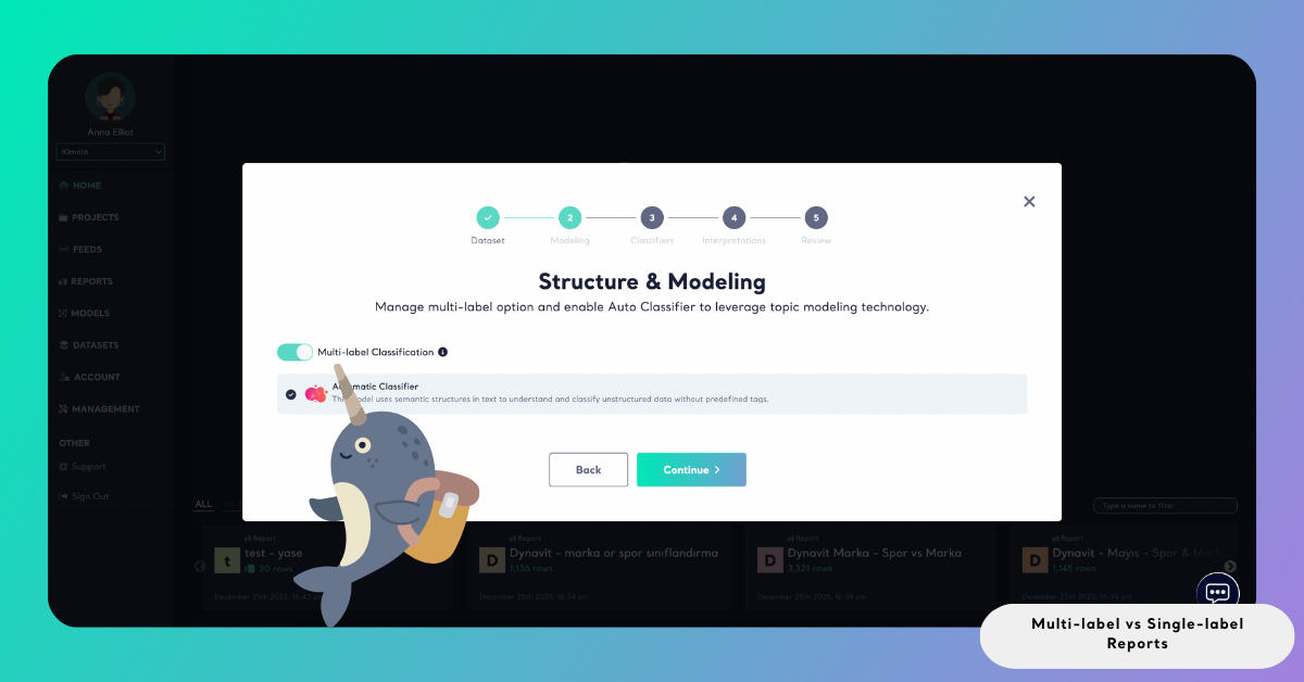 Multi-label and single-label structures work independently of the classification method you choose in Kimola. Both structures are fully compatible with: