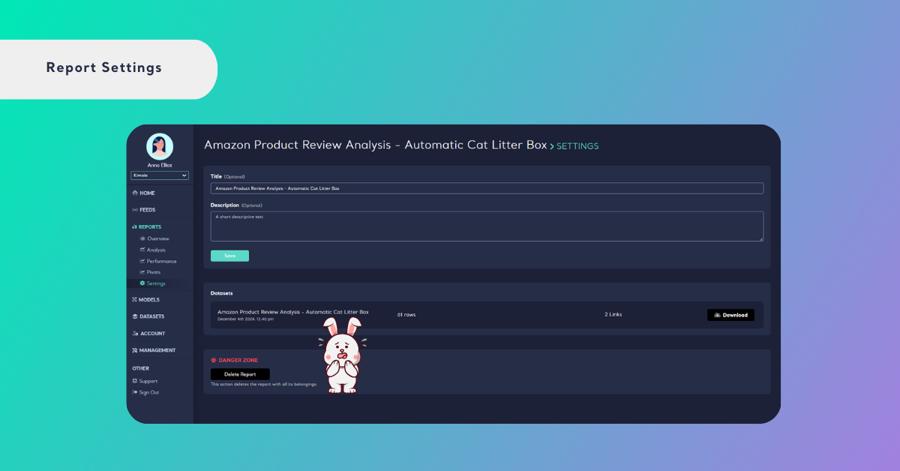 For those requiring raw data for deeper analysis, navigate to the "Datasets" section under the report settings tab and click "download" to access the original dataset.