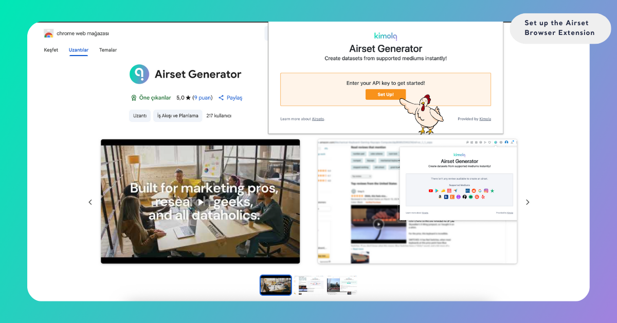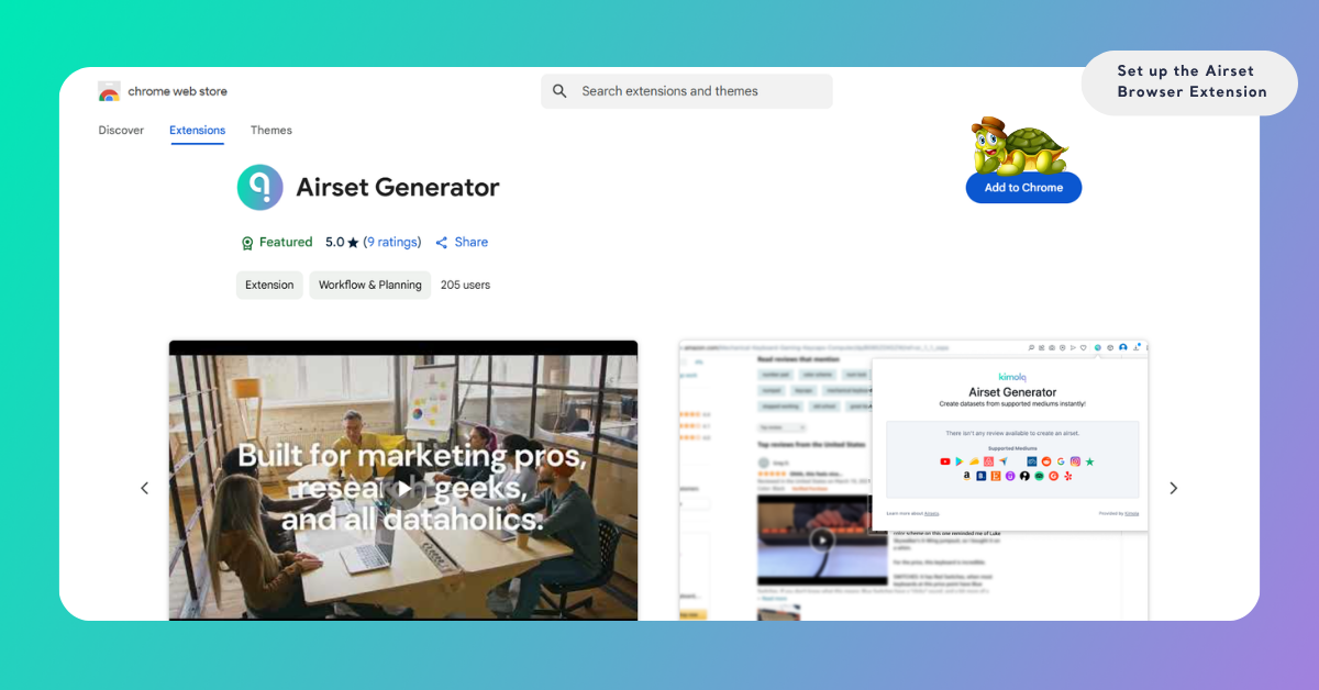 - Visit the Chrome Web Store and search for “Airset Generator”, or use the direct link provided in Kimola’s dashboard.