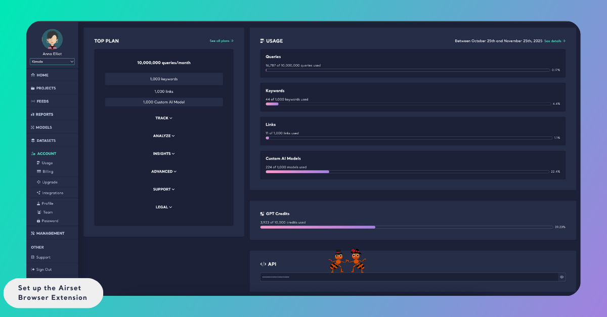 Once installed, it connects directly to your Kimola account and automatically creates Airsets — ready for reporting or deeper analysis on your dashboard.