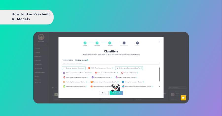 - At the Classifier selection step, choose the pre-built models that align best with your data’s goals and characteristics, ensuring optimal results.