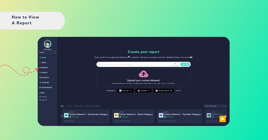 On the left panel of your Dashboard, locate and click on the "Reports" menu. This action will take you to the page listing all the reports you have created.
